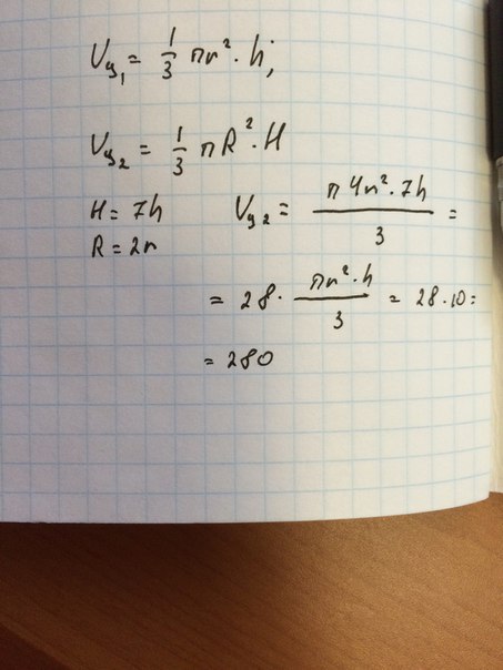 решение на фото. Объем первого цилиндра выражаешь, когда ищешь объем второго