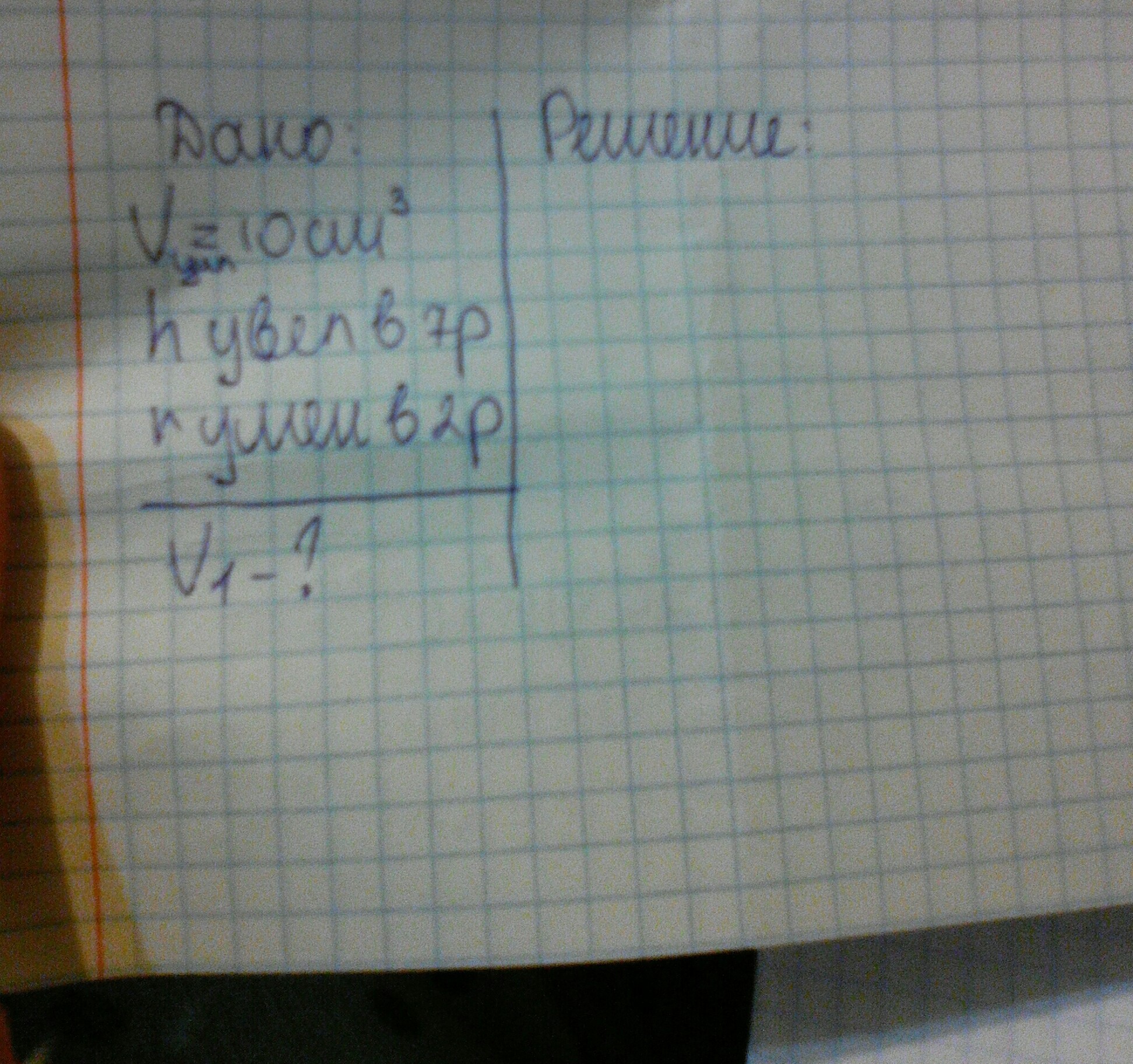 Объем цилиндра равен 10 см^3. Высоту цилиндра увеличили в 7 раз, радиус основания- в 2 раза. Найдите объем нового цилиндра.