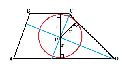 В трапеции АВСД биссектрисы углов С и Д пересекаются в точке Р.