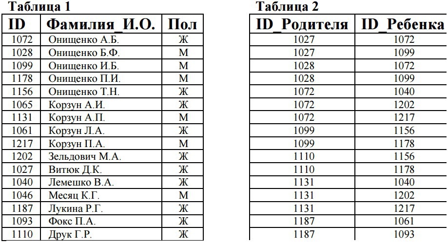 В фрагменте базы данных представлены сведения о родственных отношениях. На основании