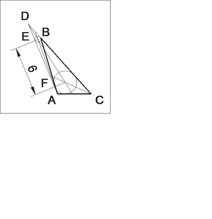 И еще, самое главное, не рассмотрен второй случай, когда точка Д лежит на продолжение стороны ВС. В этом случае будет внешняя касательная двух окружностей. Задача решена наполовину.