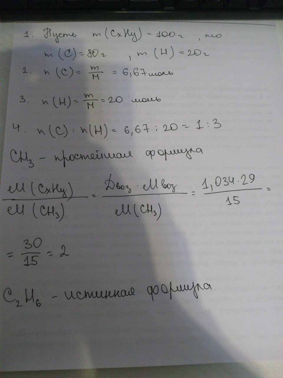 Молярная масса вещества равна 29 х 1,034 = 30