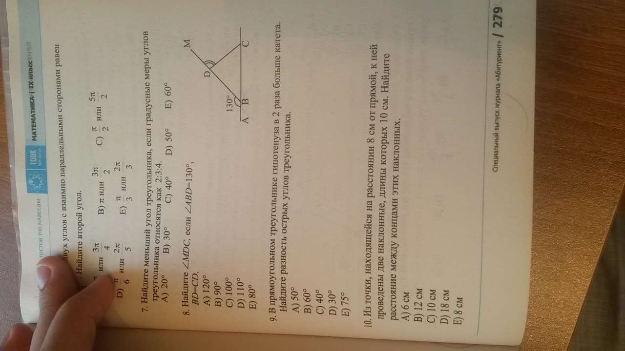 8. ∠DBC = 180°-∠ABD = 180°-130°=50° - (по теореме - сумма смежных углов равна 180°)