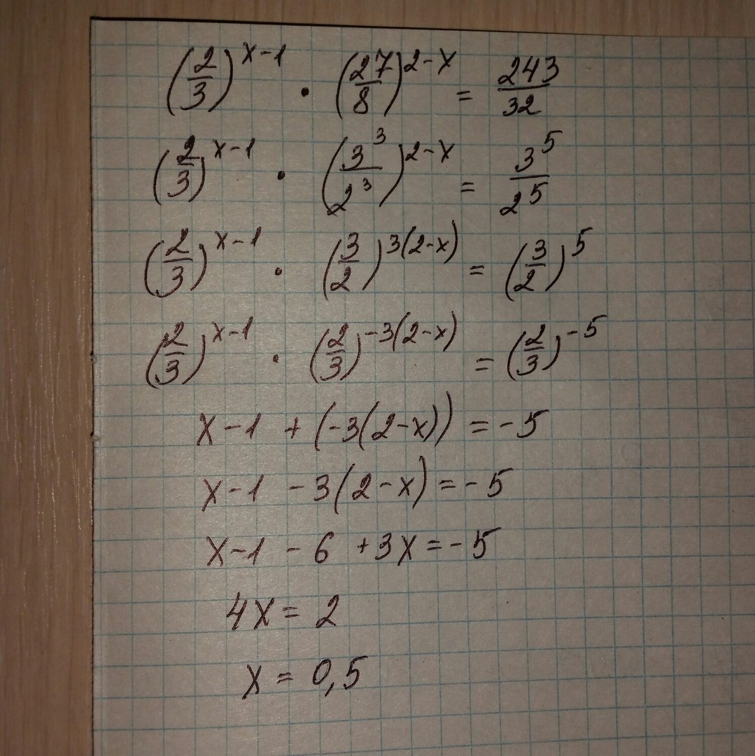 Уравнение преобразуем :(3/2)^(-x+1)· (3/2)^(6-3x)=(3/2)^5.