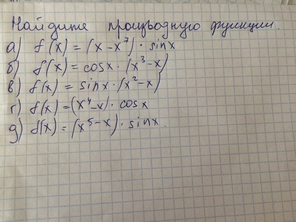 г) f'(x) = (4x³ -1) * Cosx - (x⁴ -x) * Sinx