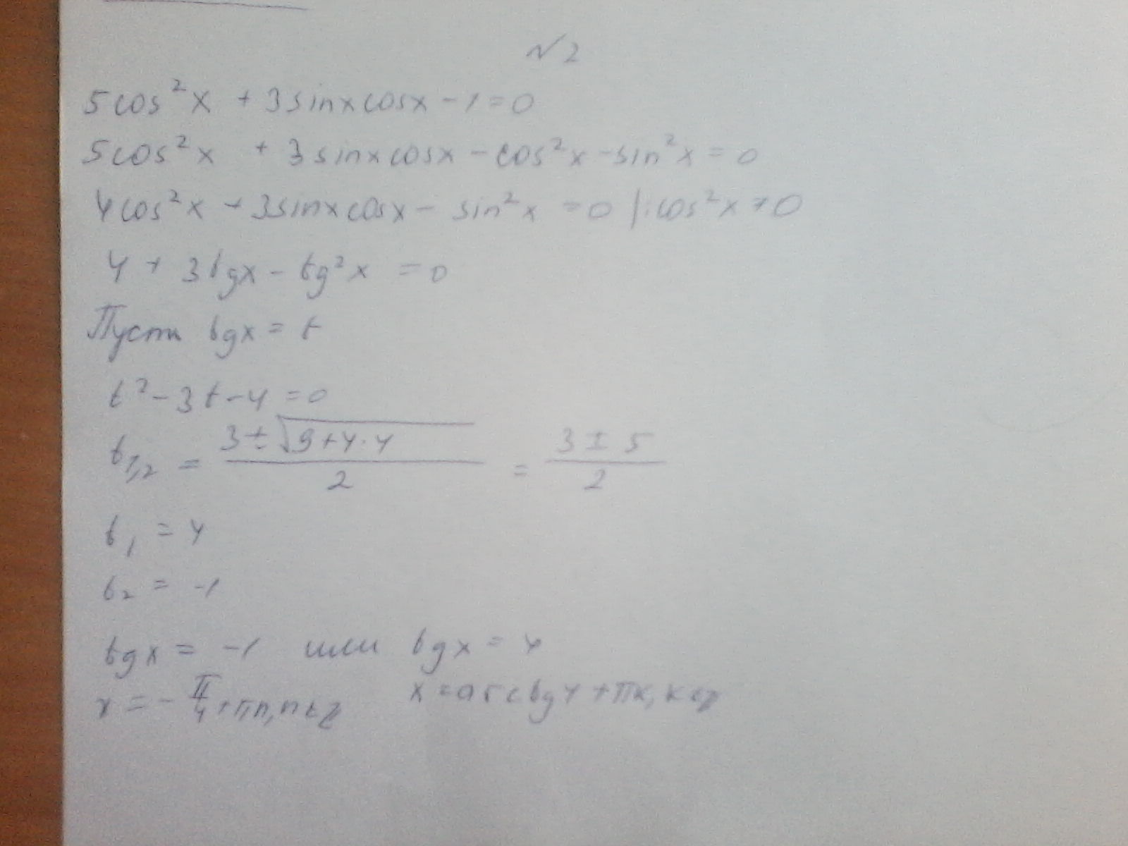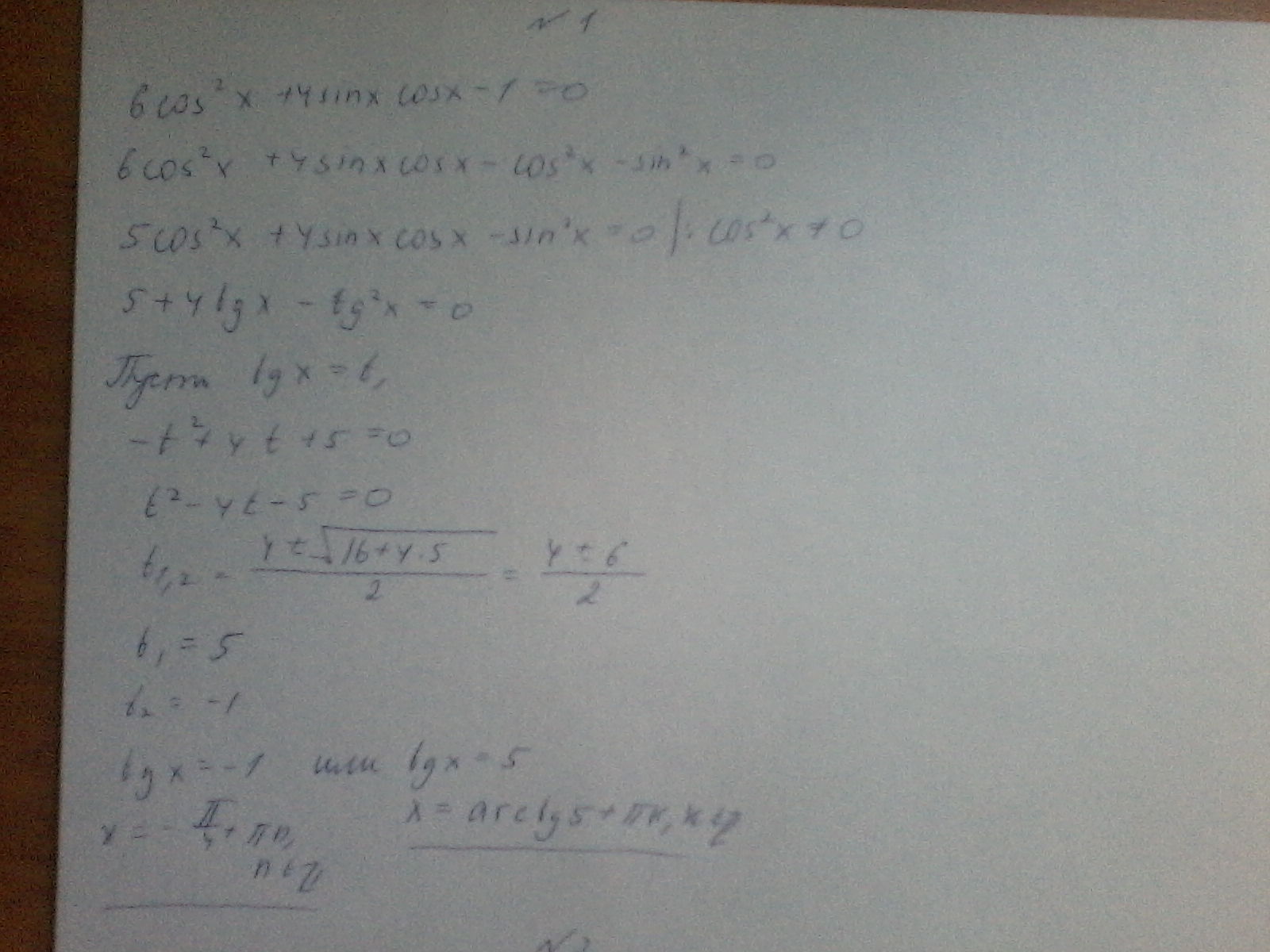 я решала как ты, но подруга, отличница, решила через деление на синус и получение котангенса и один корень не сошелся:( вот и думаю теперь, как быть