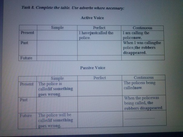 Past Perfect Passive - The police had been called when the crime scene was crowded. (Полицию вызвали, когда на месте преступления было много людей.)