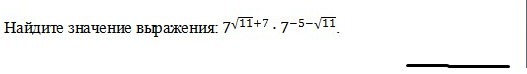 Показатели одинаковый, следовательно можем производить действия со степенями. При умножении степени складываются (кор. 11+7-5- кор. 11); корни взаимо уничтожаются , остается ( 7-5=2). Ответ: 2