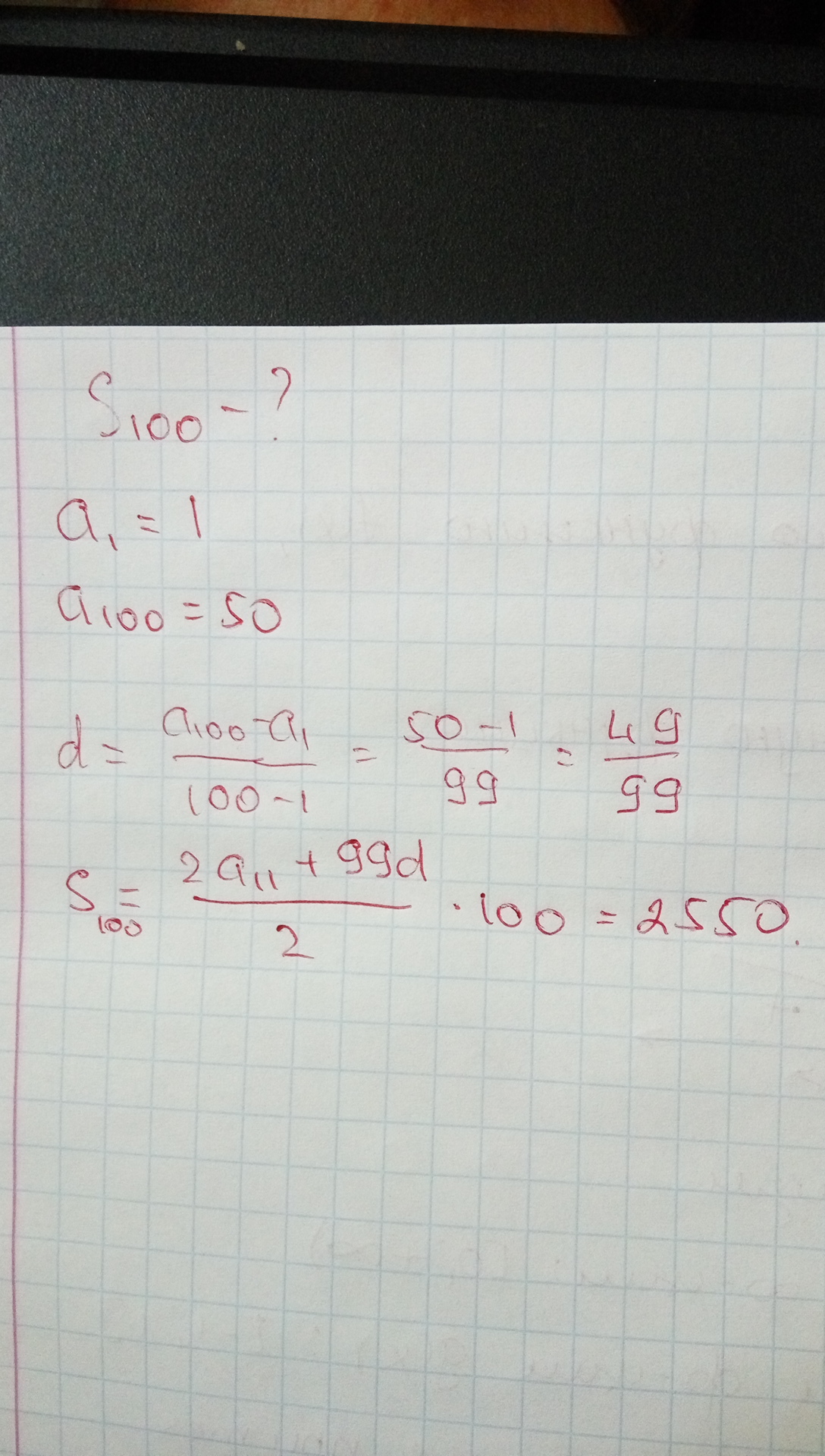 S₁₀₀ = (a₁ + a₁₀₀)*50 = (1 + 50)*50 = 51*50 = 2 550