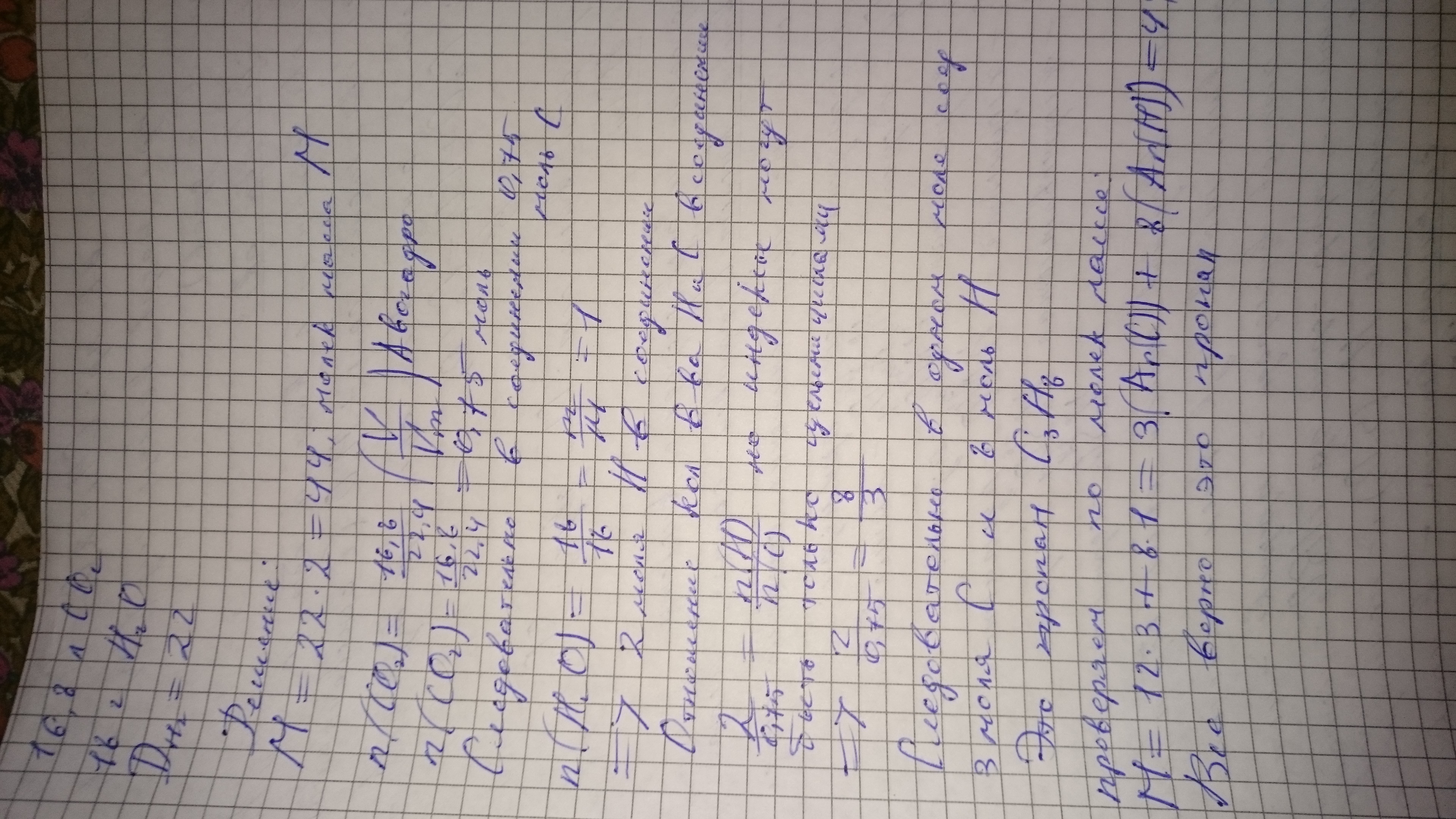вивести молекулярну формулу органічної сполуки, якщо при спалюванні цієї речовини обємом 5.6 л утворилось 16,8л Карбон(4) оксиду і 18г води. Відносна густина пари речовини за воднем дорівнює 22.