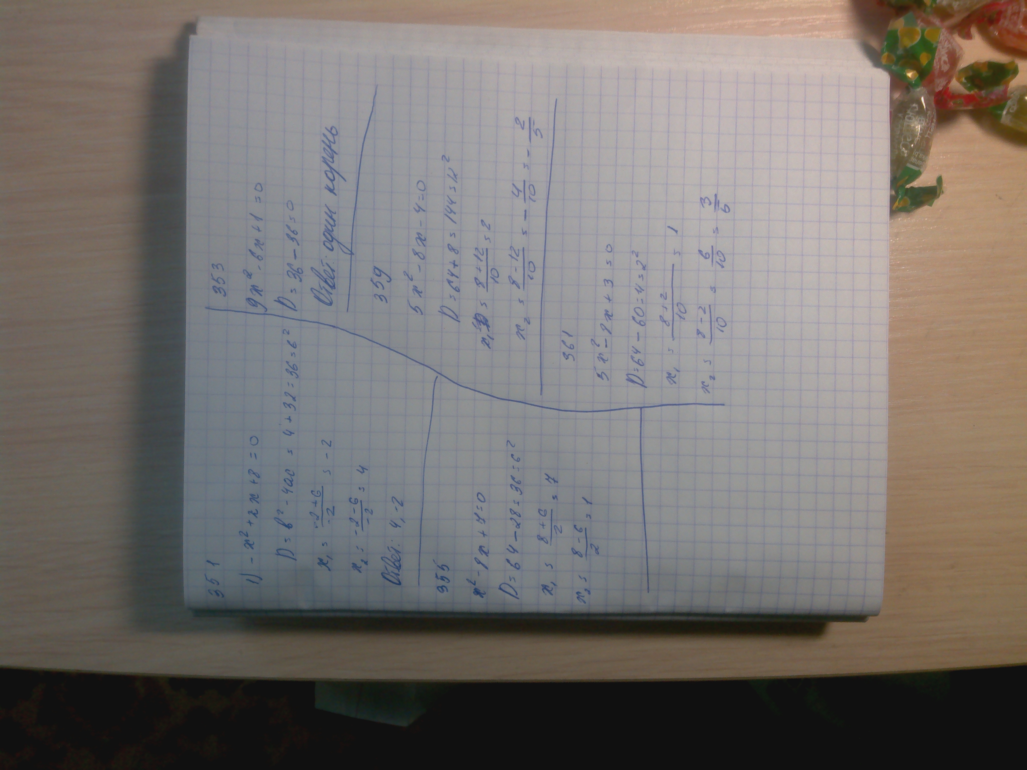 5)5x²-8x-4=0 D=64-4*5*(-4)=64+80=144=12² x1=(8+12)/10=2 x2=(8-12)/10=