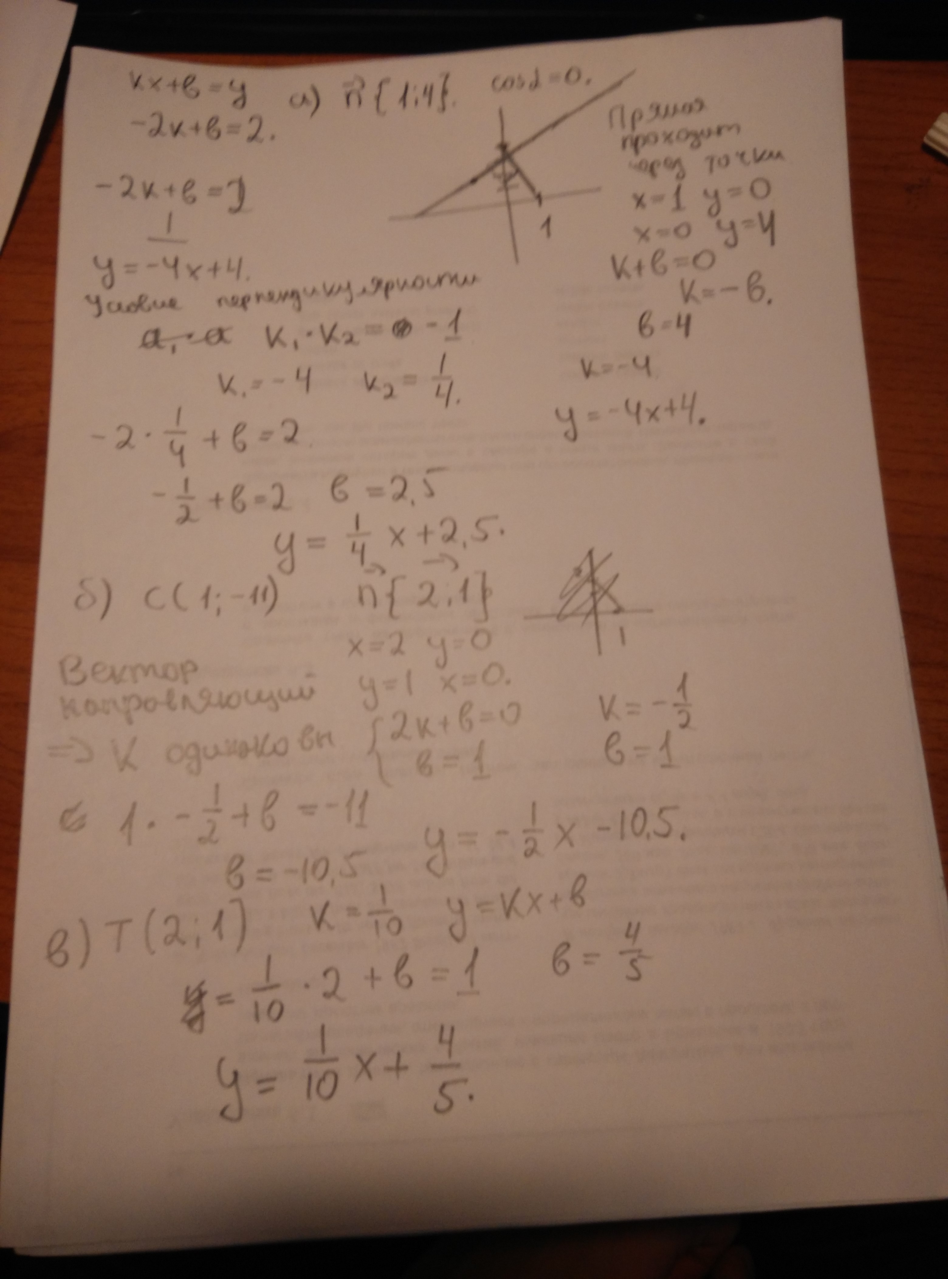 в) через точку Т(2;1) с угловым коэффициентом k=1/10