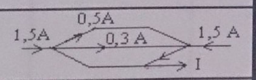 По нижнему левому проводнику идет ток равный 0.7 А, по нижнему правому будет идти такой же ток, следовательно ток, идущий по ответвлению будет равен 0