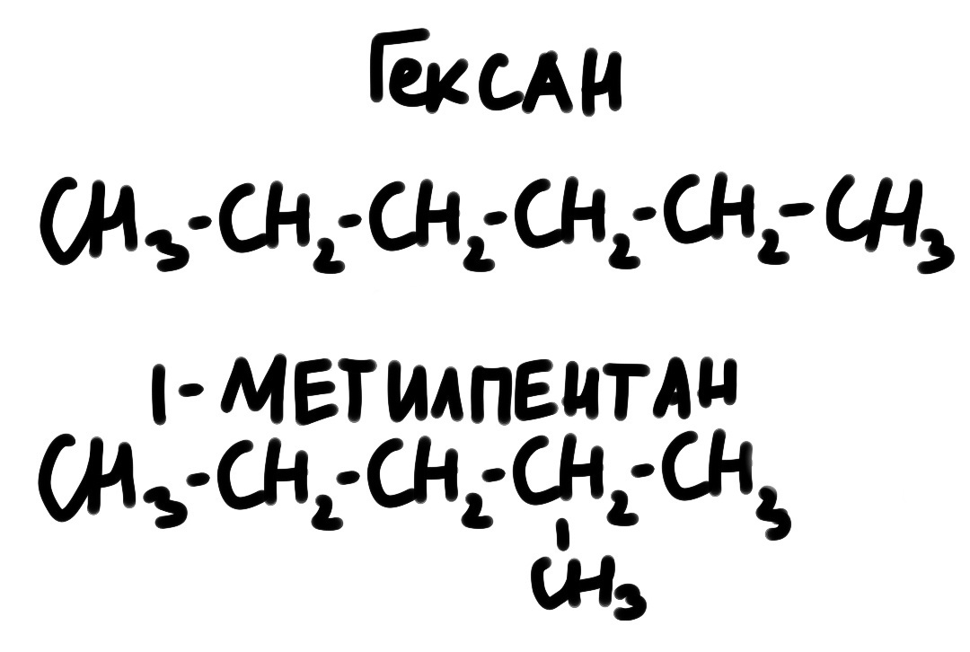 Например у гексана и метилпентана одинаковые формулы(C₆H₁₄), но разная структура(смотрим рисунок).
