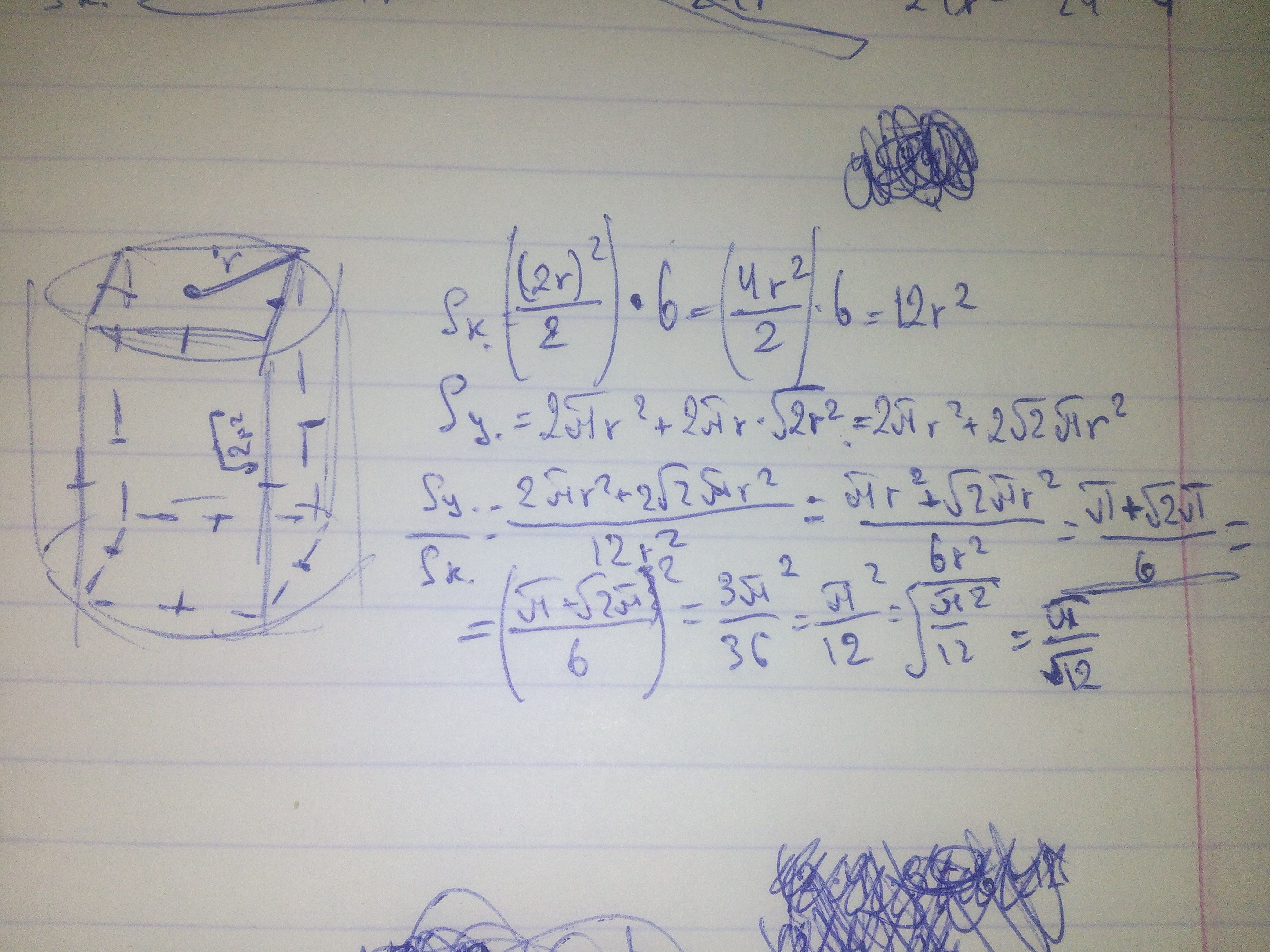 в цилиндр вписан куб. Найдите отношение площади полной поверхности цилиндра к площади поверхности куба