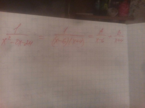1/(x²-2x-24)=1/(x-6)(x+4)=A/(x-6)+B/(x+4)