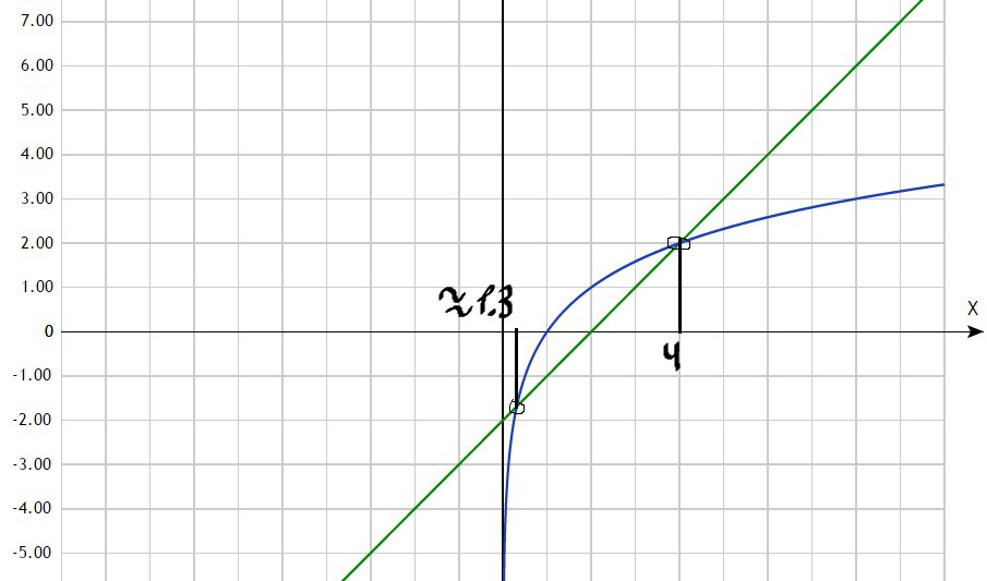 Синяя линия - это график y = log2x