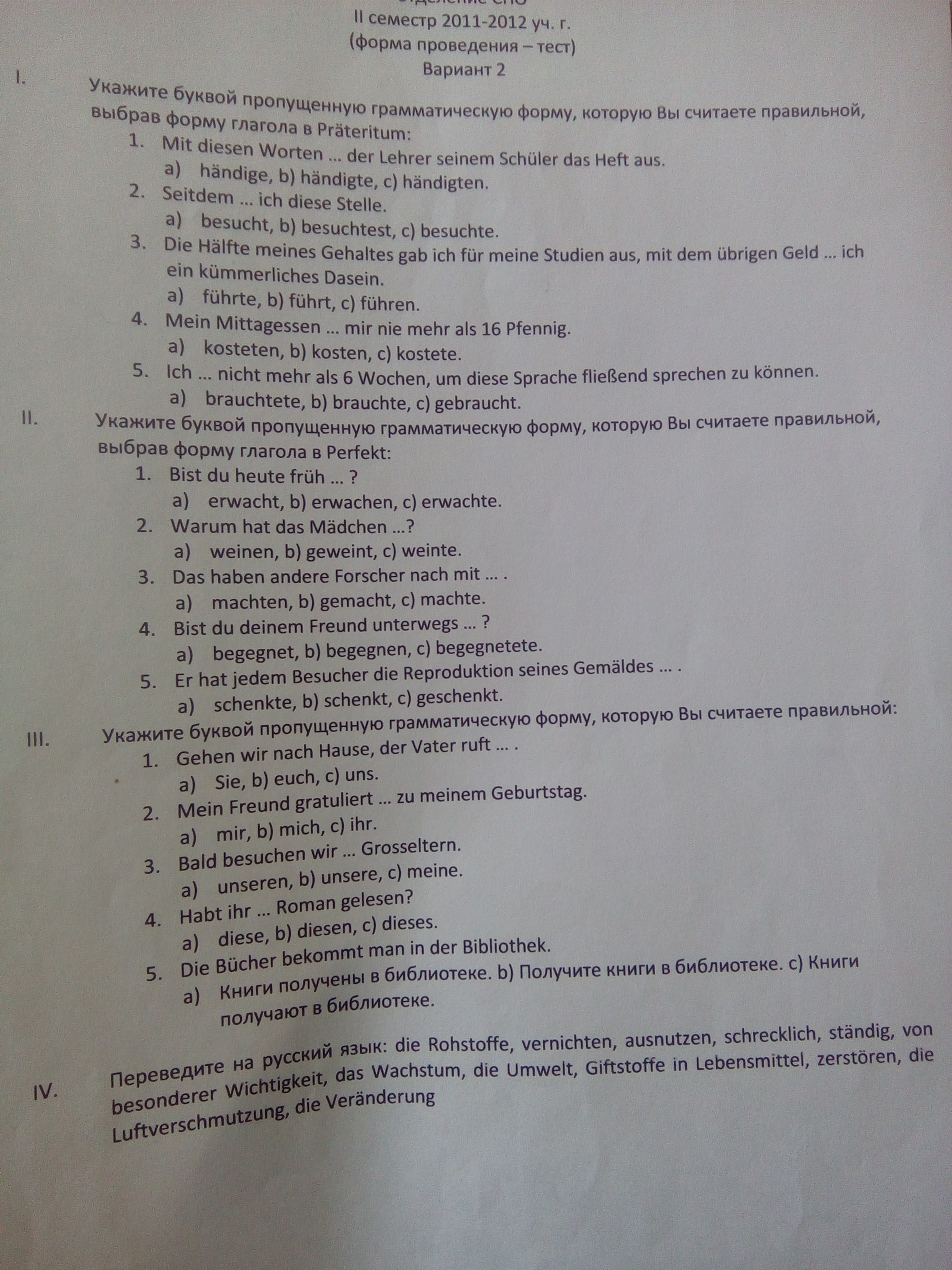 II. 1 - a; 2 - b; 3 - b; 4 - a; 5 - c;