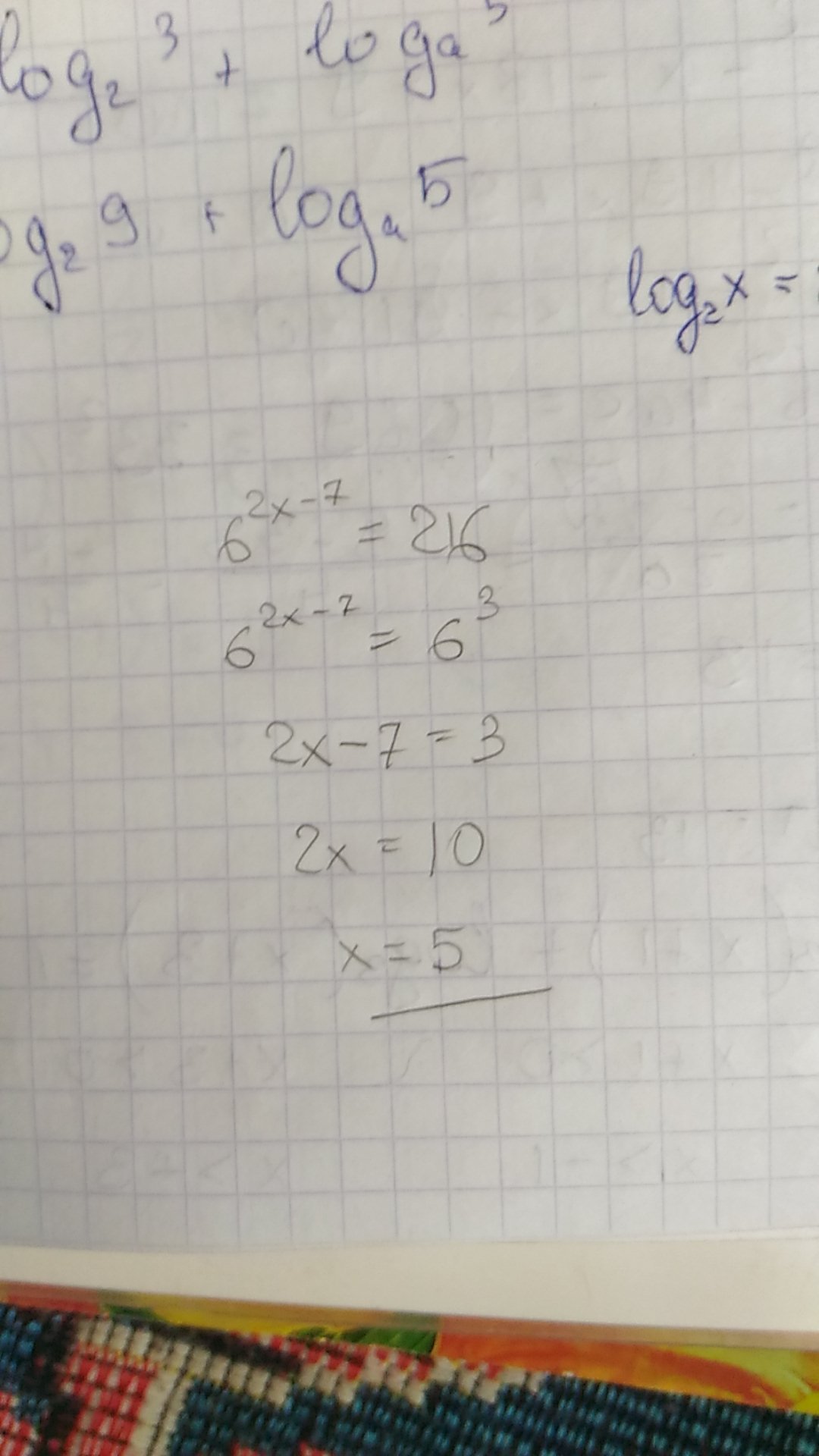 216 приводим как 6 в 3 степени, потом "убираем" 6ки и решаем обычное уравнение