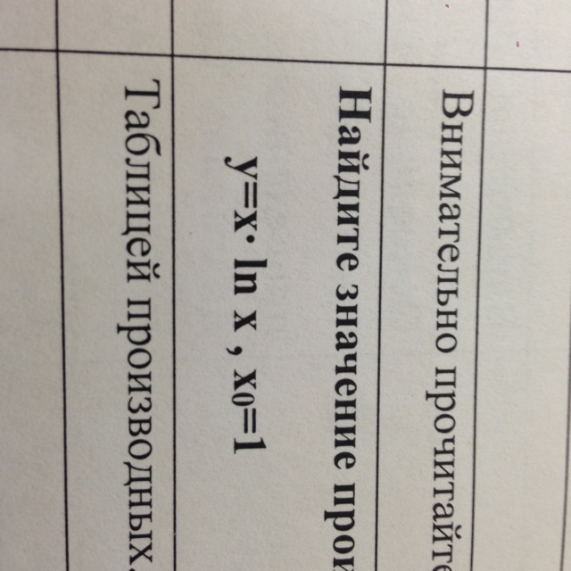 у' = ln1 + 1 = 0+1 = 1