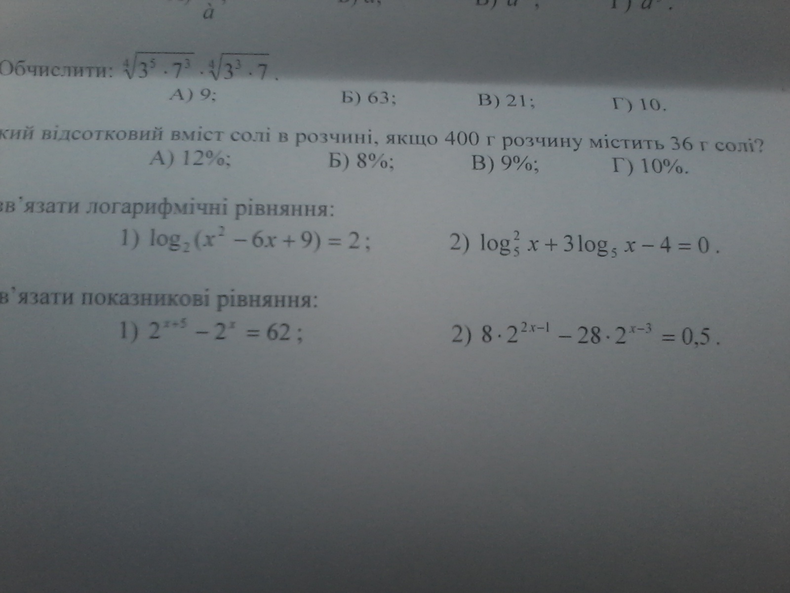 1. 3^5/4 * 7^¾* 3^¾* 7^¼ = 3^2 * 7 = 63. Овет Б