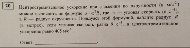 R = a / w^2 = 405 / 9^2 = 405 / 81 = 5 (м)