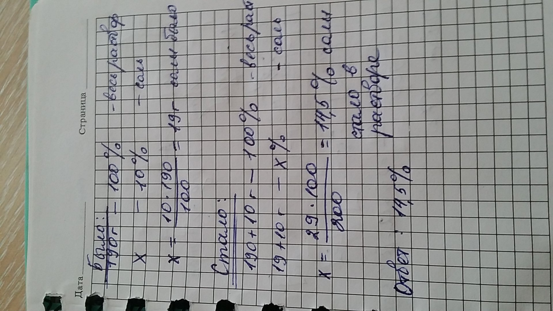 К 190г, 10%ного раствора соли добавили еще 10г соли. Какой стала массовая доля соли в полученном растворе?