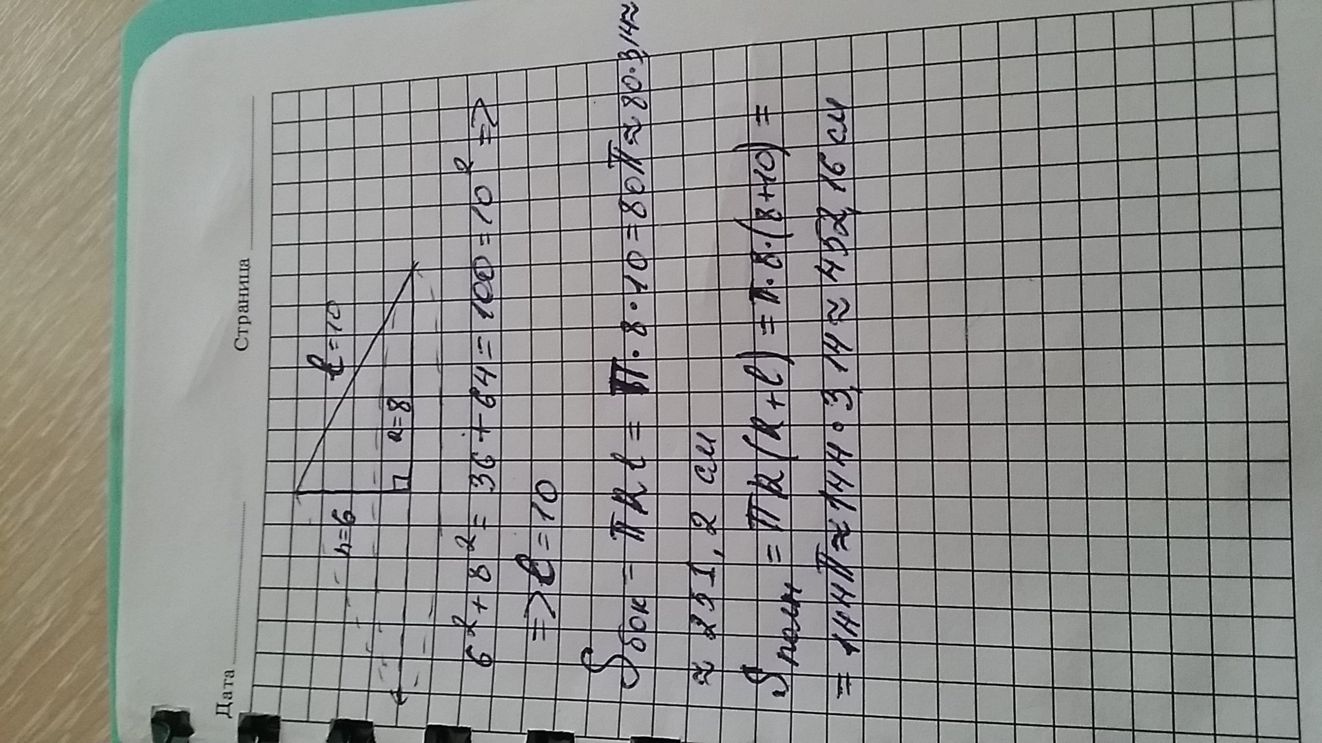 прямоугольный треугольник с катетами 6 см и 8 см вращается вокруг меньшего катета .вычислите площади боковой и полной поверхностей образованного при этом вращении конуса