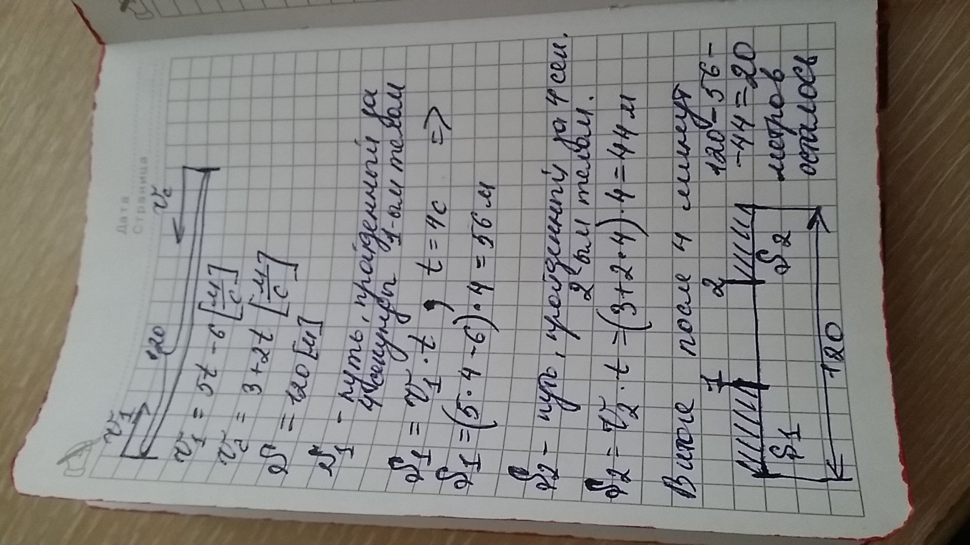 решение на фото, если что непонятно, спрашивай. Вкратце скажу, мы сначала вычисляем, сколько каждое тело прошло за 4 секунды. А потом из 120 м вычитаем эти пройденные пути.