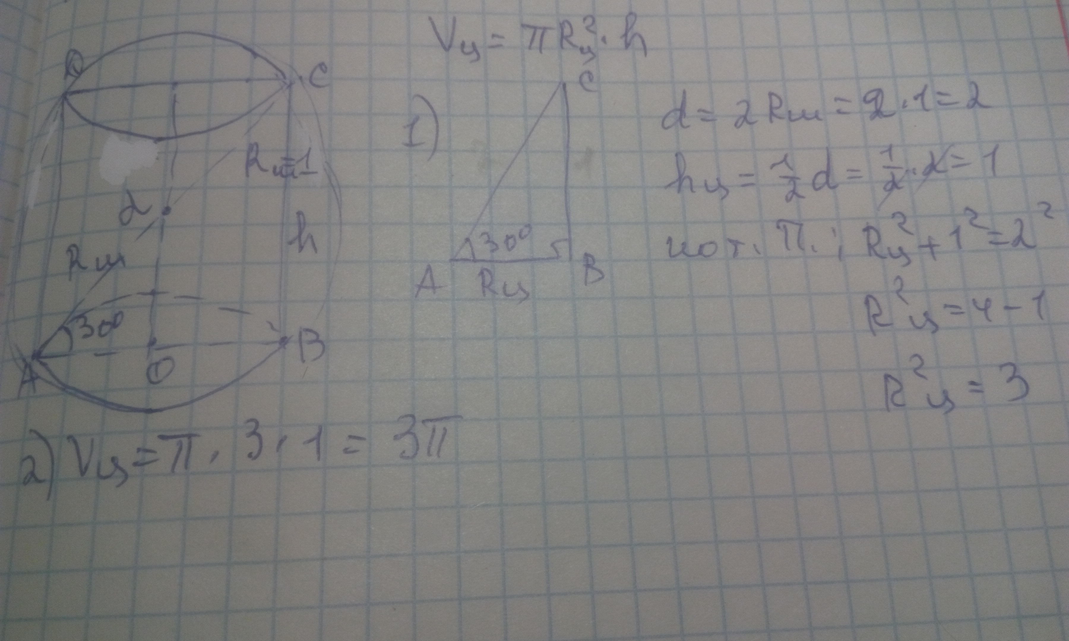в шар радиус r вписан цилиндр. диагональ осевого сечения цилиндра наклонена к основанию под углом 30°. Найдите объем цилиндра