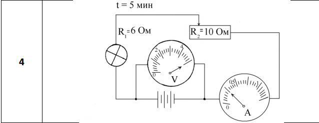 4. Какой заряд проходит за время t через лампочку и через реостат?