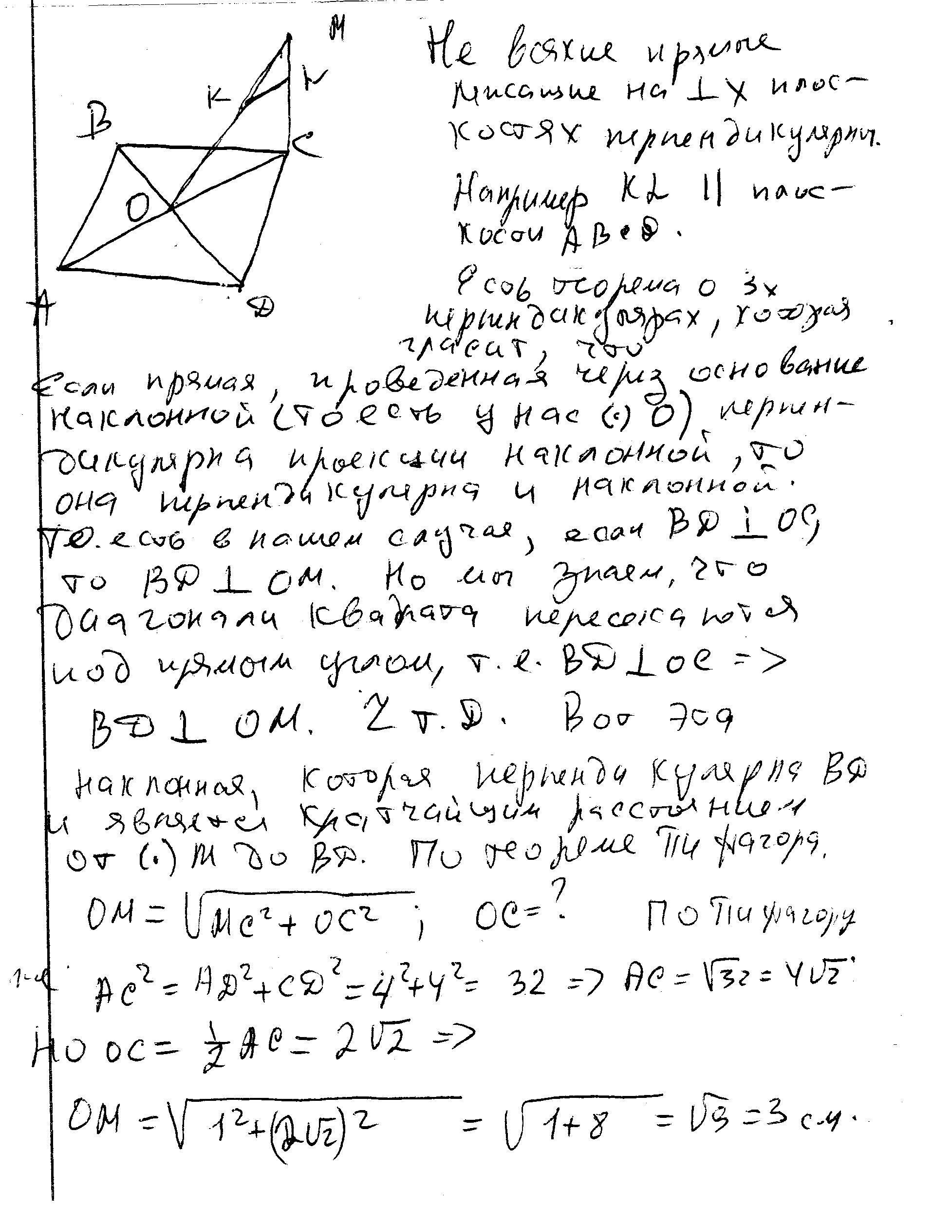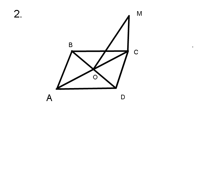 2. Через вершину С квадрата ABCD проведена прямая MC, которая перпендикулярна плоскости квадрата AC∩BD=O