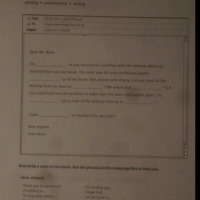 А слова есть, которые надо вставить? По сути письмо вообще не ясно