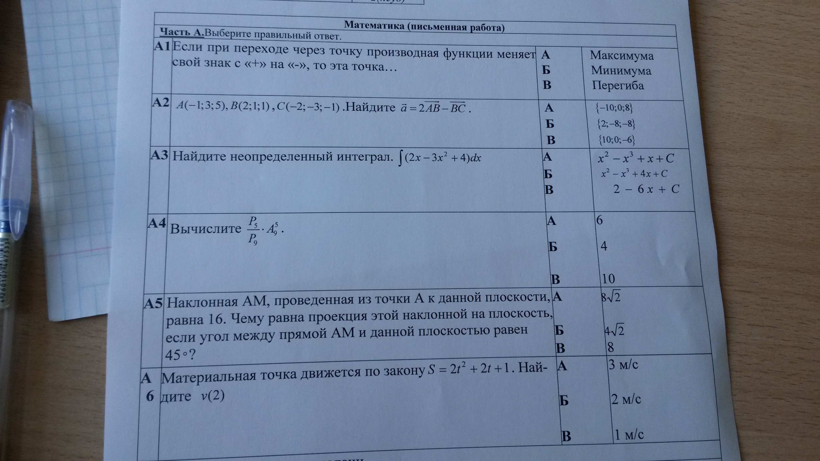 А6 - опять не вижу верного варианта, получается ответ 10: производная v(t) = 2*2t+2 = 4t+2, v(2) = 4*2+2 = 10