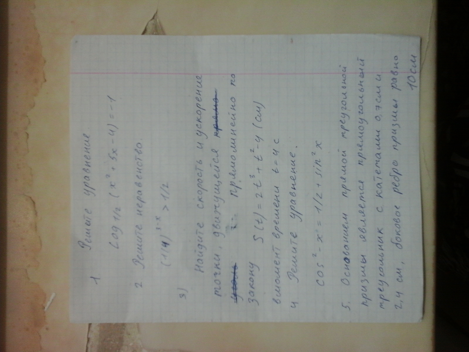 очень прошу помогите решить домашку, я в школе два года не был а в колледже алгебры почти не было. очень прошу помогите. на пятом надо найти площадь боковой и полной поверхности призмы. кто поможет буду очень благодарен