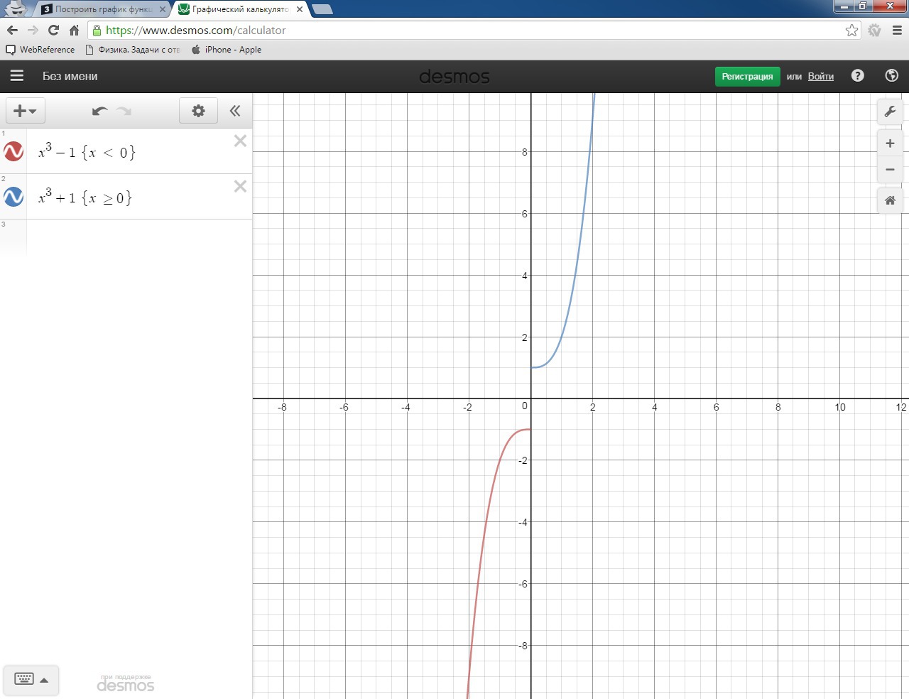 Для x ≥ 0, наша функция равна x³+x/x=x³+1. Эта функция - кубическая парабола, смещенная на одну единичную клетку вверх.
