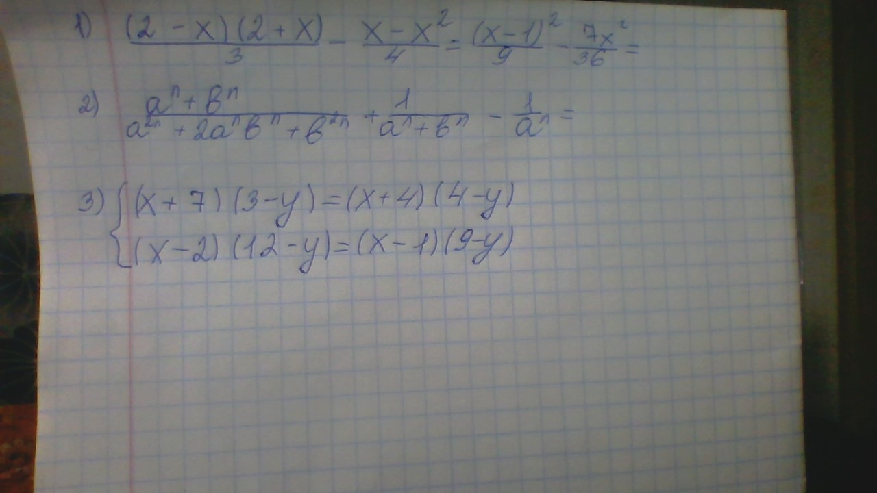 { 3x + 21 - xy - 7y = 4x + 16 - xy - 4y