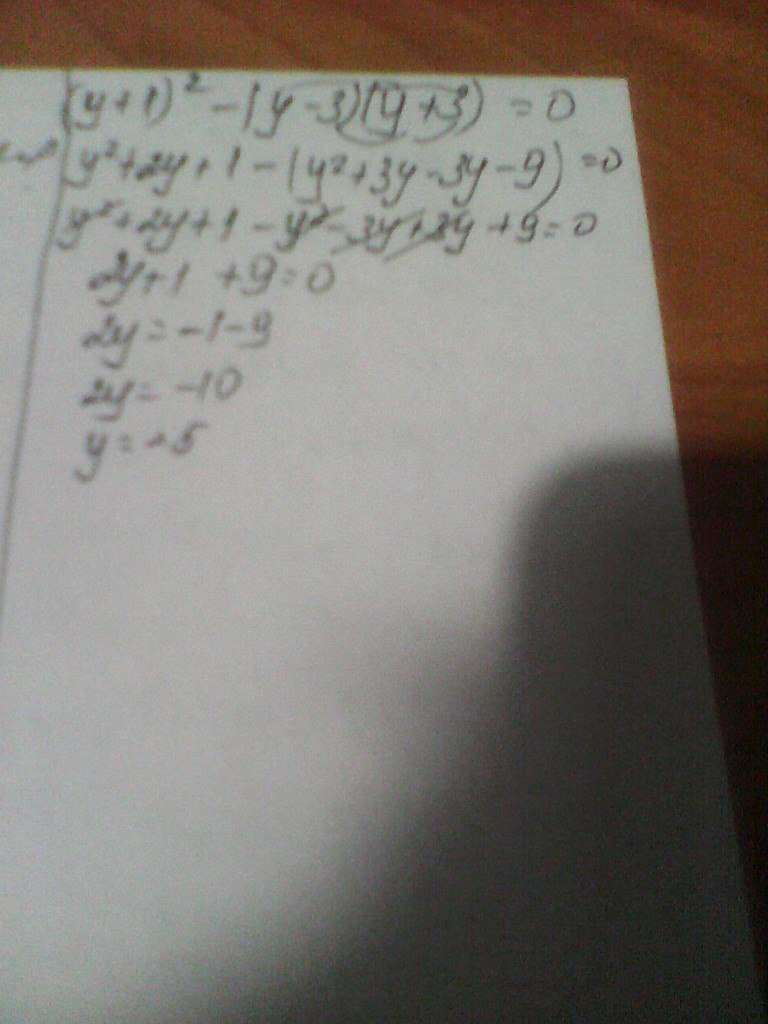 y²+2y+1-(y²+3y-3y-9)=y²+2y+1-y²+9=2y+10 2y=-10 y=-5