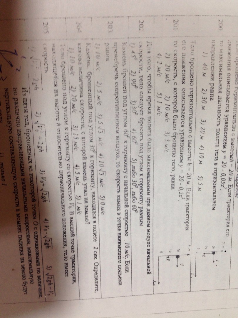 203. В наивысшей точке предмет будет двигаться только относительно оси координат х. поэтому мы можем воспользоваться формулой: