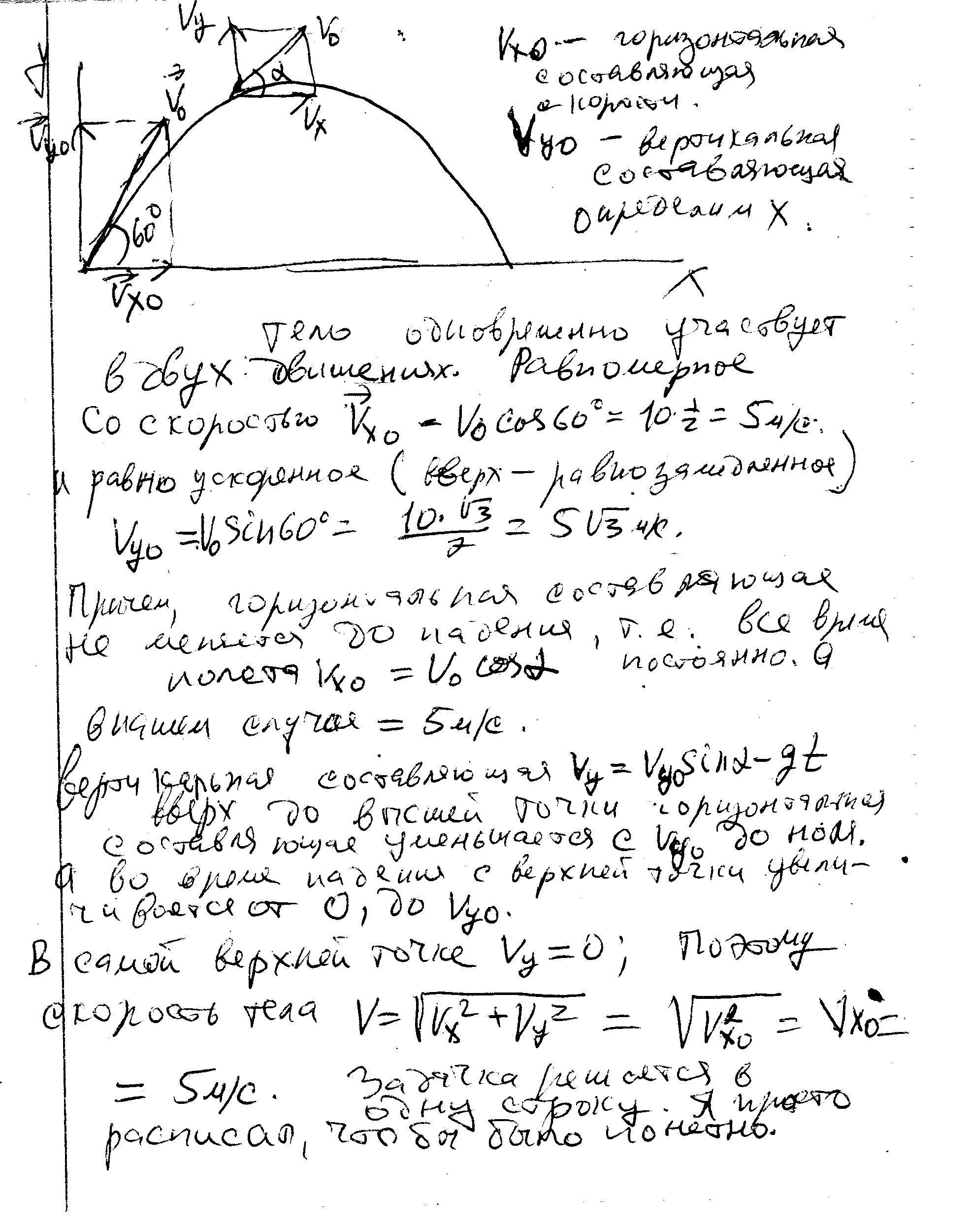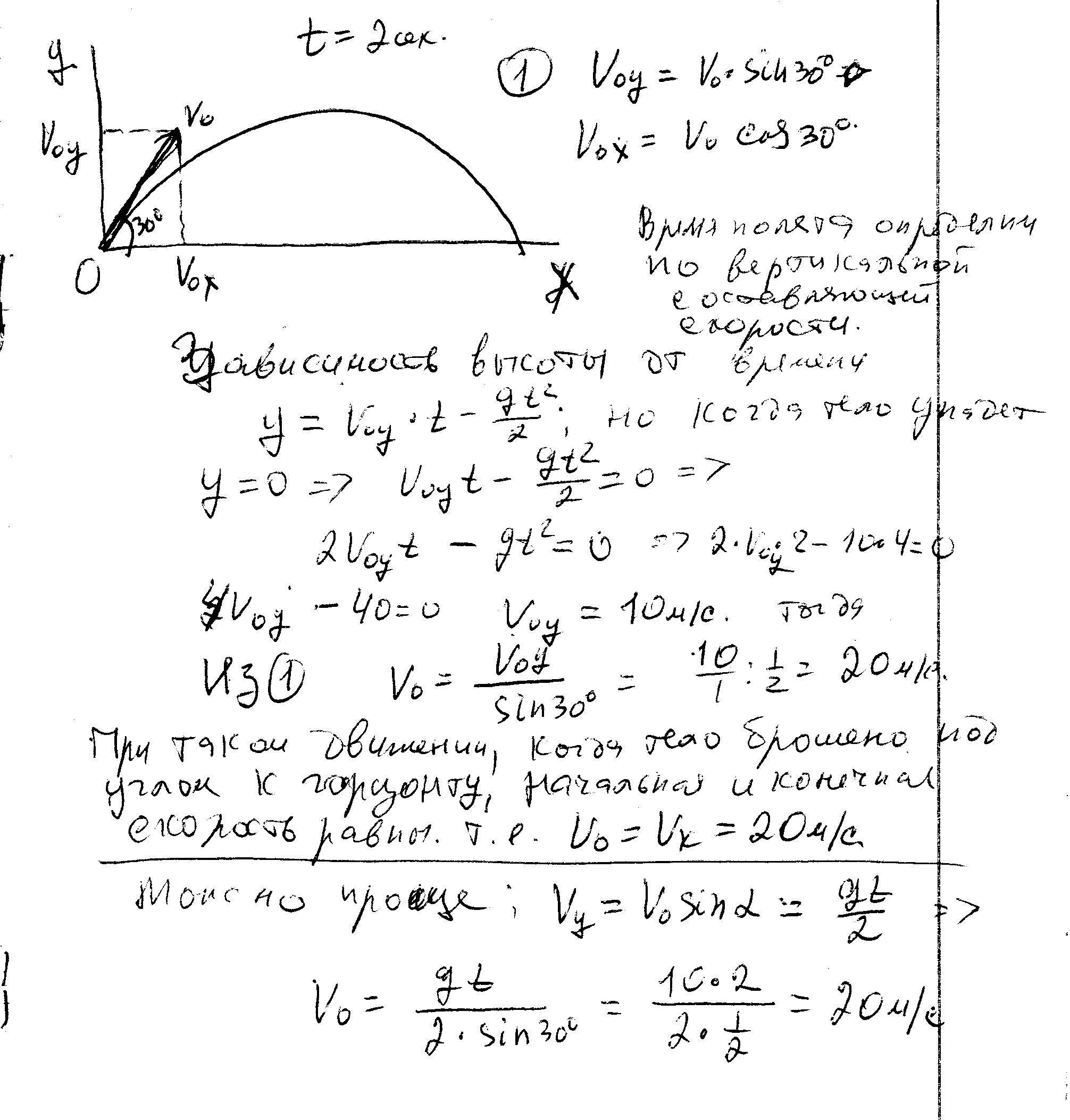204. Т.к. камень был в полете две секунды, то 1 секунда на полет, 1 секунда на падение. В наивысшей точке у нас нет вертикальной скорости, поэтому камень свободно падает с наивысшей точки. За 1с приобретает скорость равную V=gt. также скорость бросания у нас будет равна скорости падения, поэтому