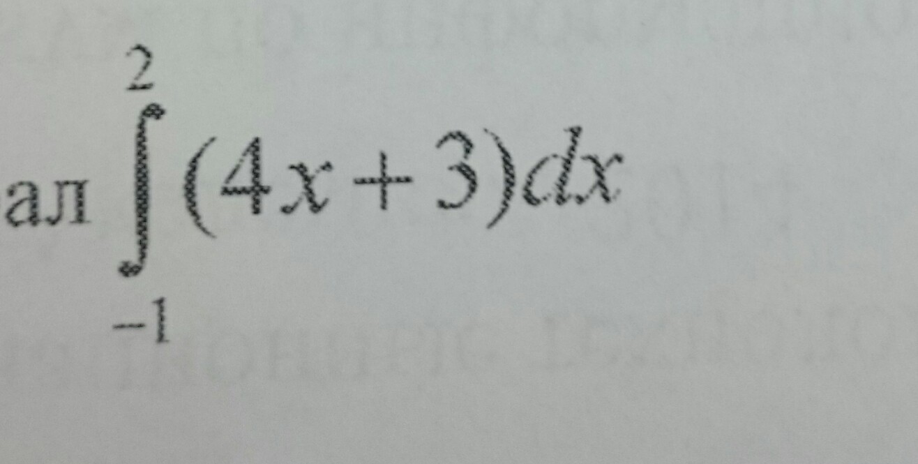 ∫(4x+3)dx =/2x²+3x/ =(2.2²+3.2 - (2(-1)²+3(-1))=(8+6-(2-3))=15