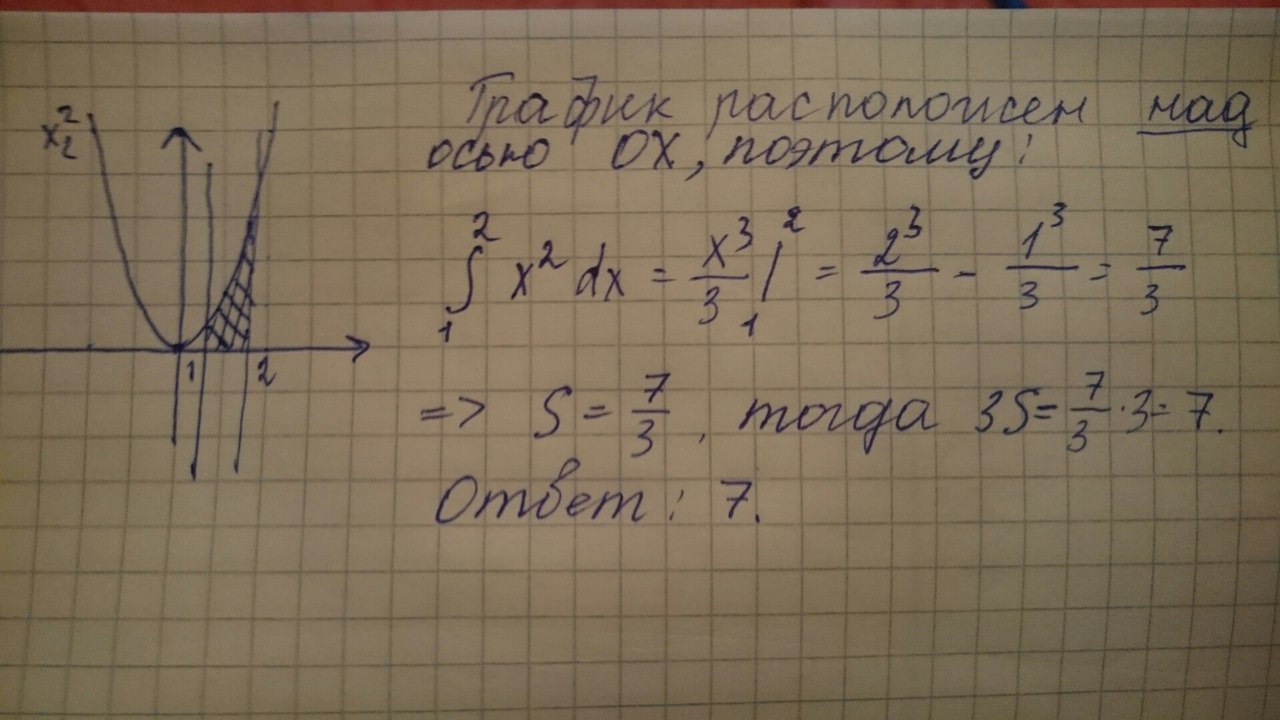 вычислите площадь фигуры, ограниченной заданными линиями у=х², у=0, х=1, х=2. Ответ запишите 3S.
