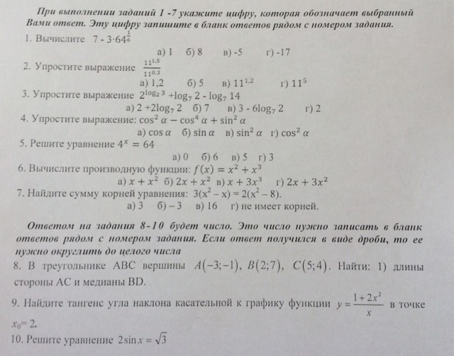1) а; 2) в; 3) г; 5) г; 6) г; 7) г; 10) пи/3