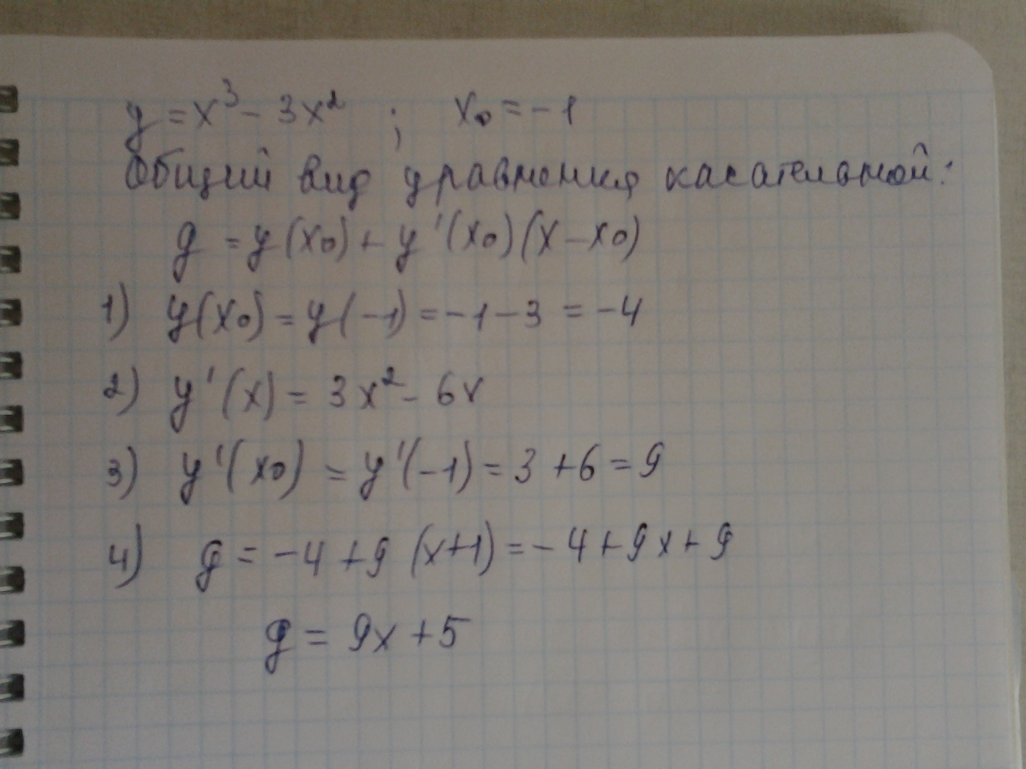 Напишите уравнение касательной к графику функции у=х^3 - 3х^2 в точке графика с абсциссой х0 = -1