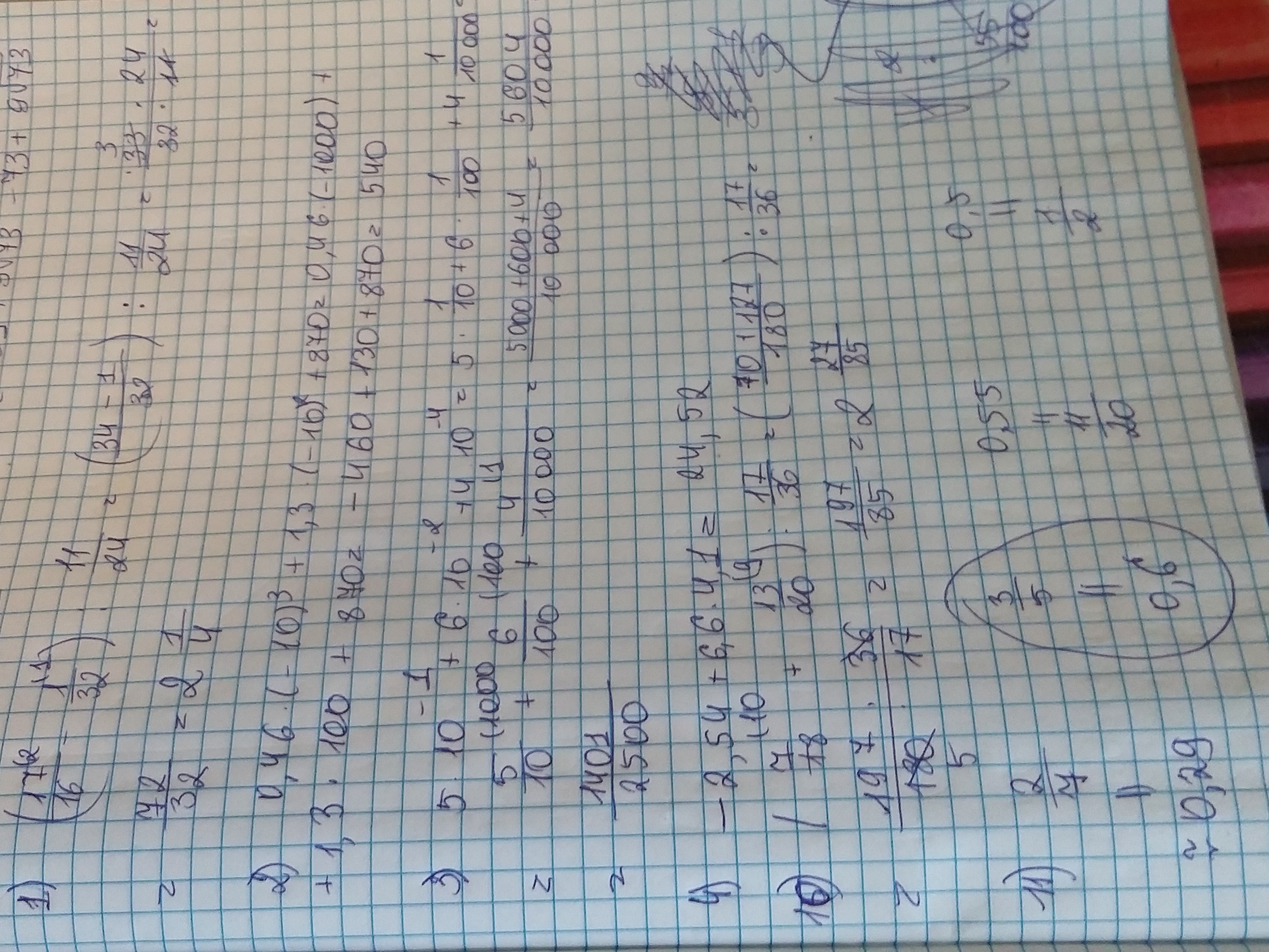 20/8 : 11/24 =20/8 * 24/11= 60/11= пять целых 5/11.