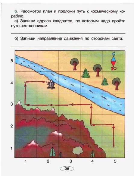 Решение. На плане три стрелки указывают на север, четыре на запад, одна - на восток.