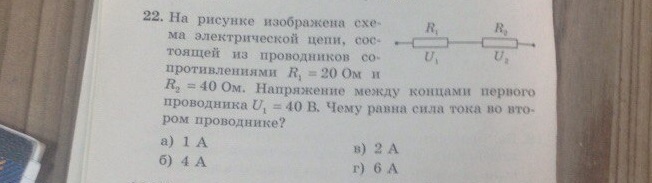 u=i*r сила тока в обоих проводниках одинакова, значит i = u/r = 40В/20Ом=2А