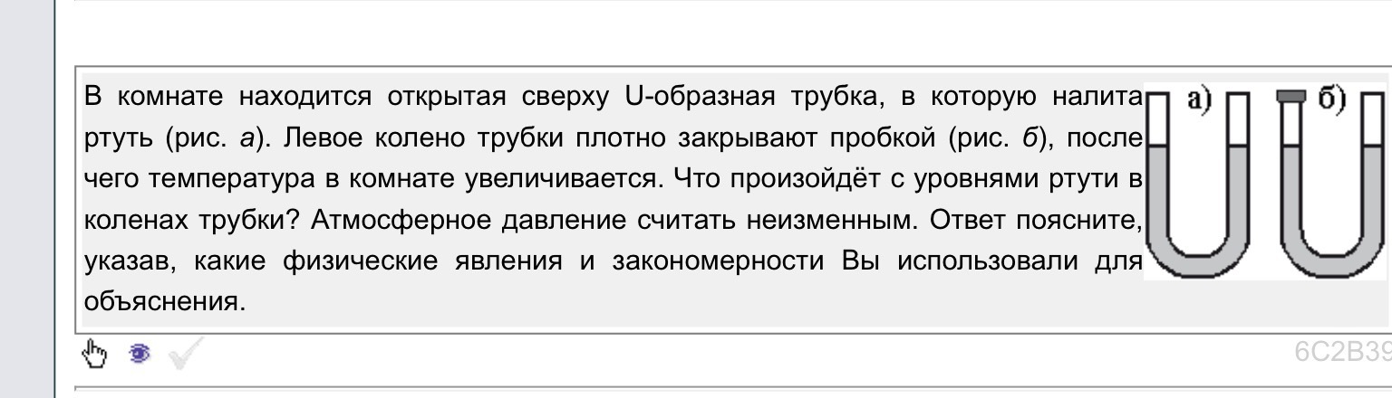 2) При закрытии пробкой, на ртуть будет одно колено ртути будет действовать атмосферное давление(открытое), а на другое давление воздуха между пробкой и уровнем ртути. Сначала уровни выравняются таким образом, что давление будет в равновесии. из трубки, где больше давление, определенное количество ртути перейдет туда, где оно ниже. При повышении температуры ртуть ничтожно мало изменит свой объем, поэтому этим можно пренебречь, а вот давление закрытого столбца воздуха увеличится, и часть ртути перейдет в открытое колено.