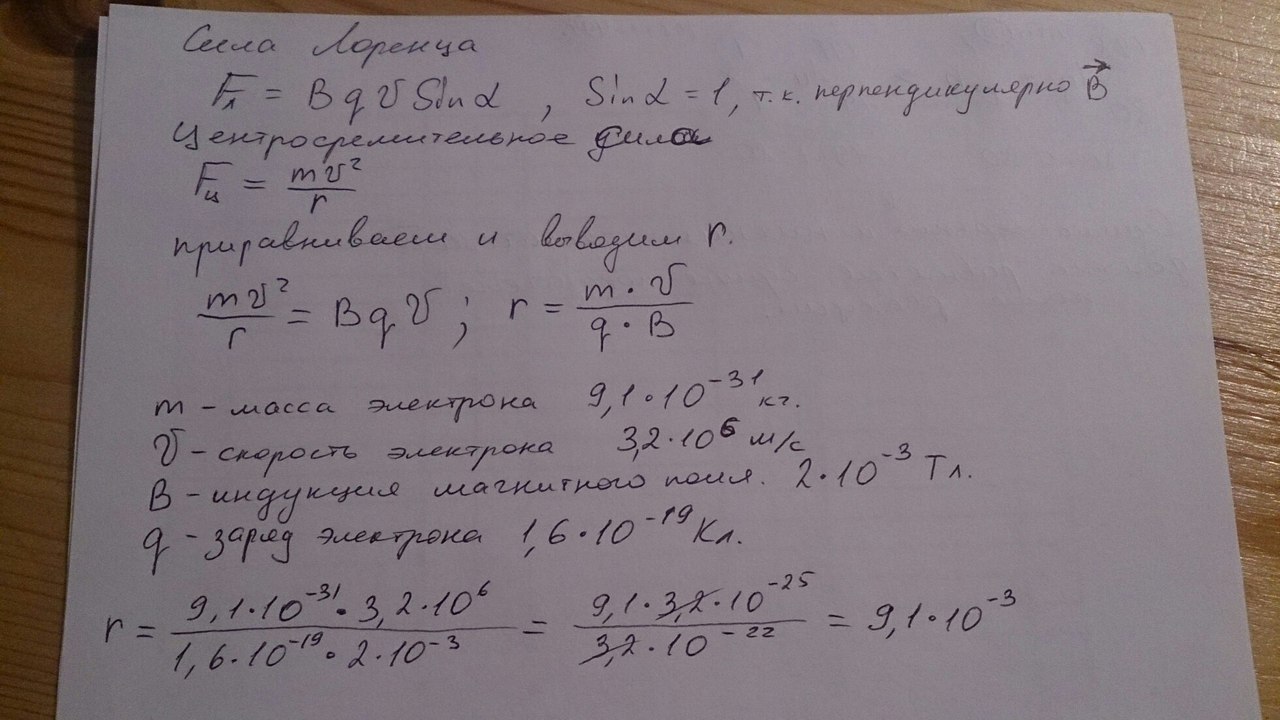 траектории электрона, если индукция магнитного поля равна 0,002 Тл