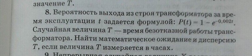⇒математическое ожидание М(T) =1/λ=1/0,002=500